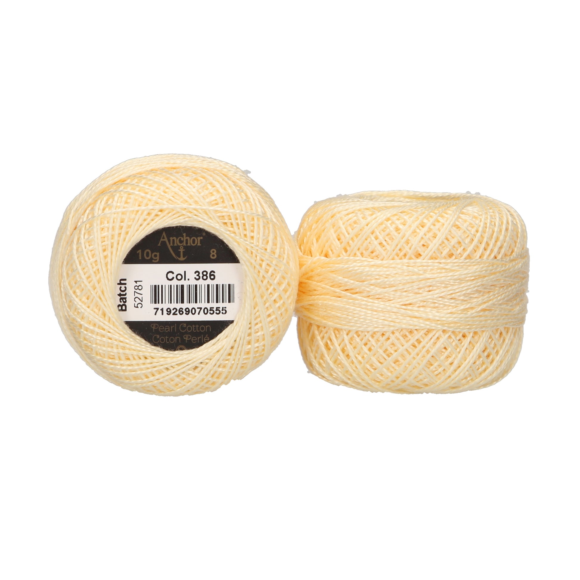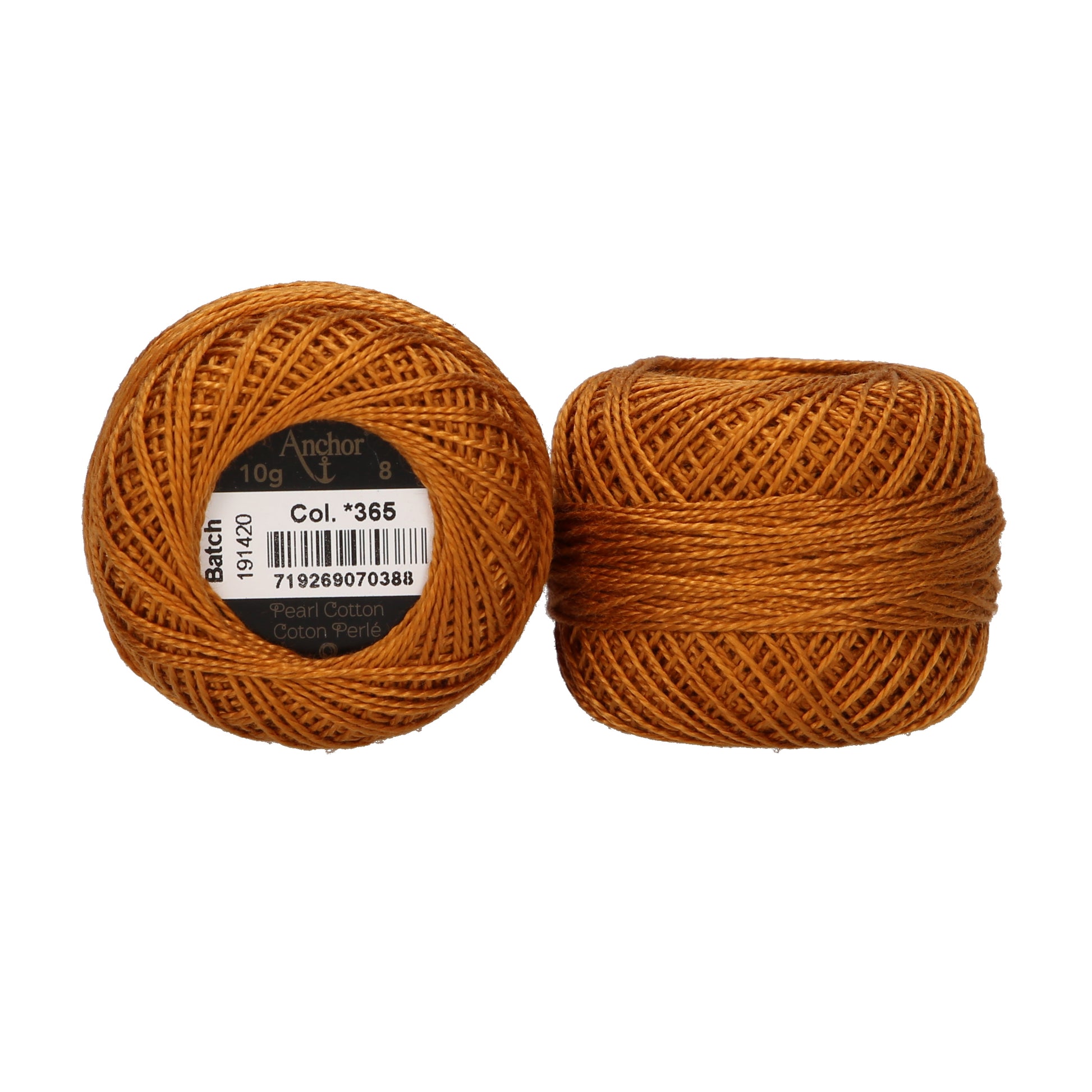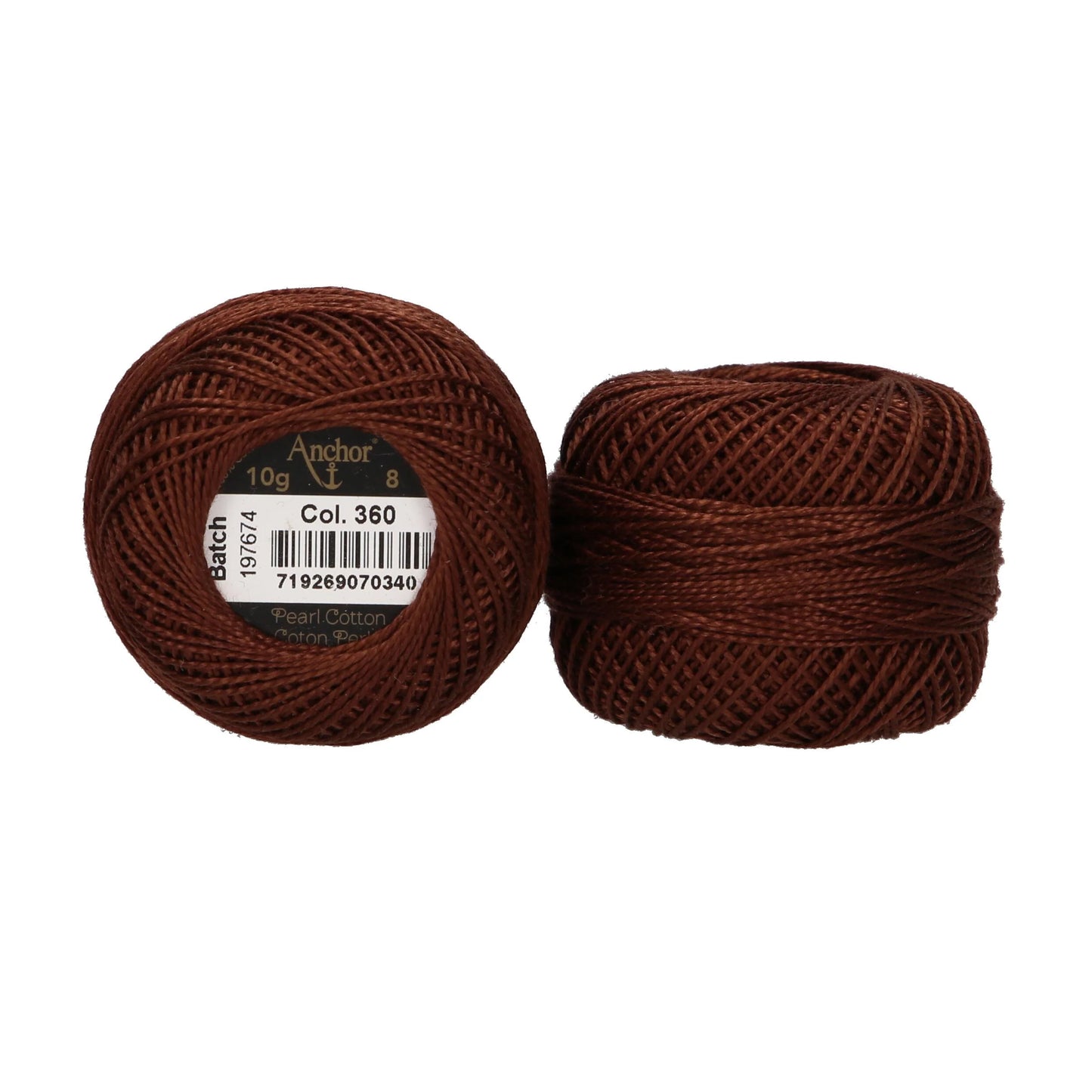 Anchor Pearl Cotton ball in ticket No. 8 thread thickness, available as a 10g ball (approx. 80m). A 2 Ply loosely cabled mercerised cotton thread.