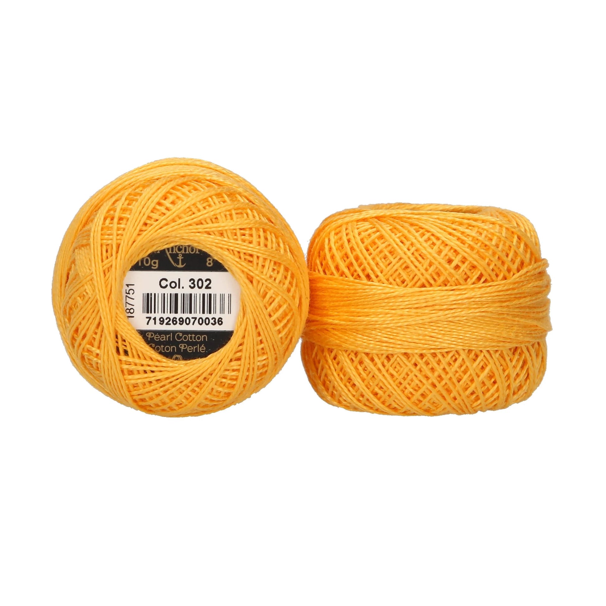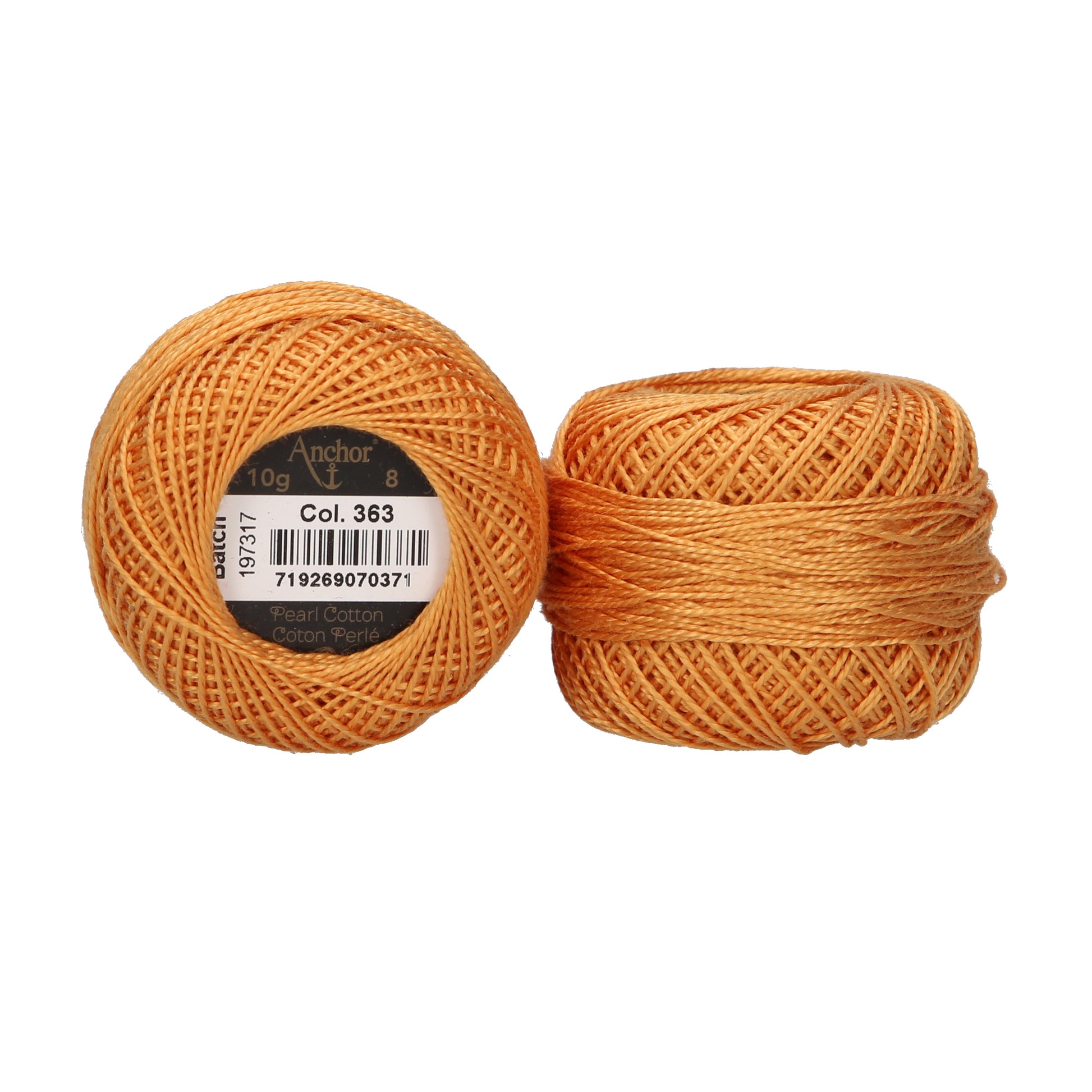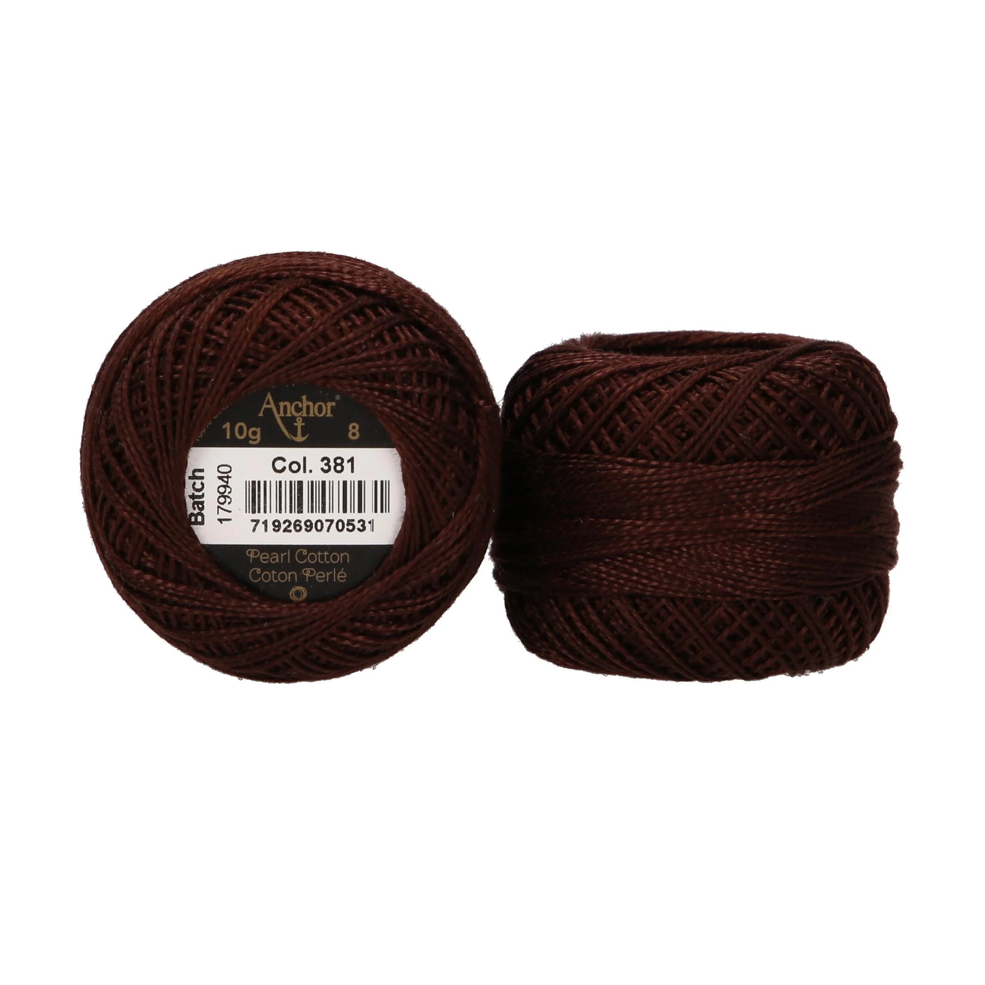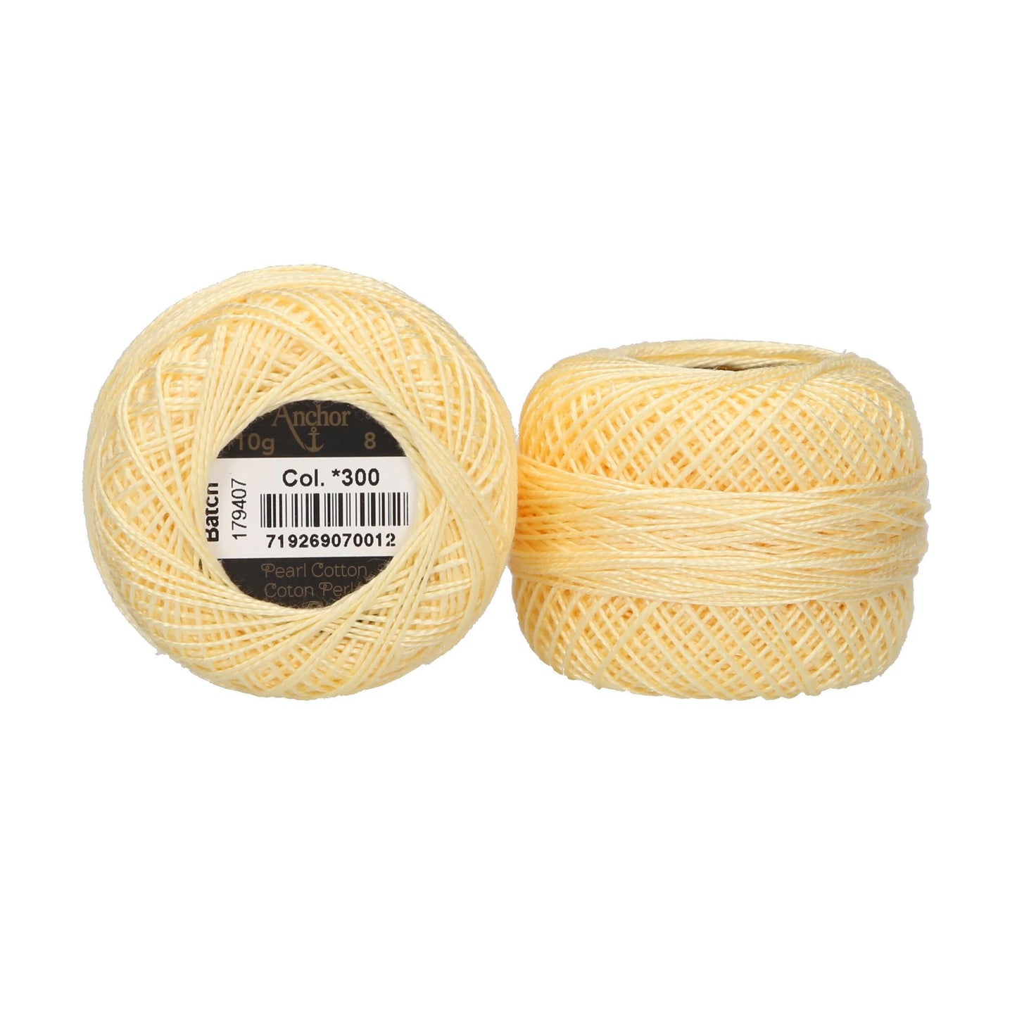Anchor Pearl Cotton ball in ticket No. 8 thread thickness, available as a 10g ball (approx. 80m). A 2 Ply loosely cabled mercerised cotton thread.