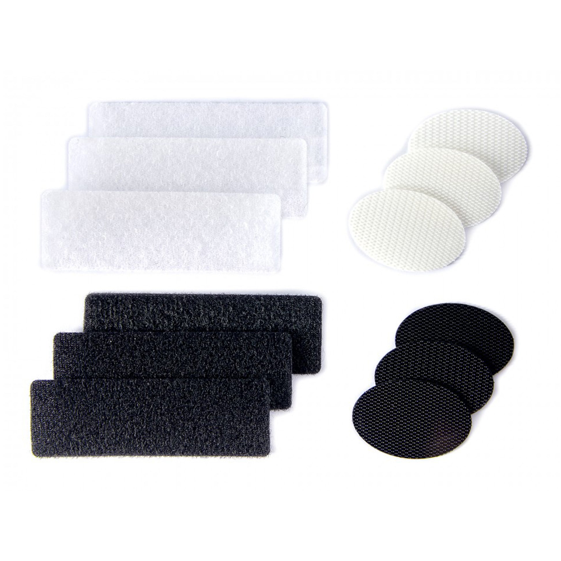 Pre-Cut, nylon, iron-on hook and loop set with rounded corners. Easy to apply. 3 pairs in black and 3 sets in white for light and dark fabric. Ideal for shirts, working apparel, overalls, work coats and uniforms. Prevents things for falling out of the pockets. Hidden and invisible. Works best on light to medium fabrics. For heavier fabrics machine stitch around each part is recommended. Can be machine washed at up to 30 degrees.
